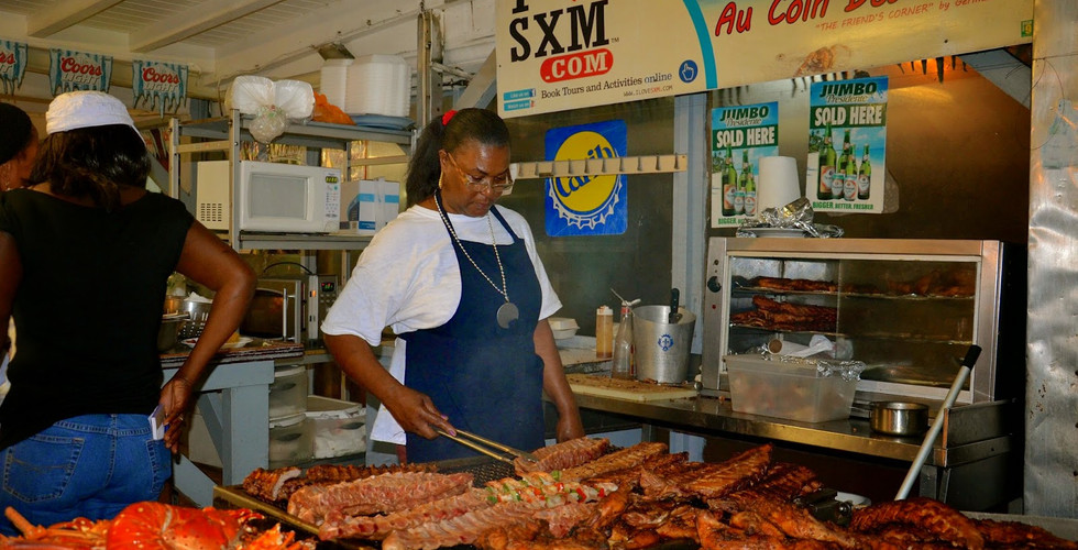 The "Lolos" Saint Martin's "lolos" are a collection of open-air, beachside grill shacks that started as a place of social gathering that is at the center of Grand Case's neighborhood’s life. Originating as bars, they developed into casual local restaurants that serve wonderful grilled fresh seafood and meats accompanied by peas and rice, a salad and macaroni and cheese - all for about $10. Our favorite is Sky's the Limit, but you have several to choose from along the Boulevard. Their ribs, red snapper and johnny cakes are to die for.